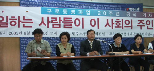 기자회견 참가자들은 '구로동맹파업 20주년 기념 결의문'을 통해 "2005년 6월, 우리는 역사를 거슬러 1985년 6월 한국 민주주의 투쟁의 또 한 장을 열었던 민중항쟁의 한 시기를 기억하고, 그 끝나지 않은 역사를 현재화 하고자 한다"고 밝히고, △빈곤과 차별을 넘어 실질적인 사회변혁 쟁취 △무장한 세계화 분쇄 △노동자민중의 역사를 사회 보편의 역사로 만들 것을 결의했다.