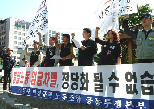 특히 노동부직업상담원노조, 산업안전공단 비정규직노조, 근로복지공단비정규직노조, 산업인력공단비정규직노조 등 4개 비정규직노조로 구성된 '노동부 비정규직노동조합 공동투쟁본부(공투본)'는 "현재 진행되고 있는 고용안정, 정규직화 협상이 원만히 타결되지 않을 경우 산업인력공단비정규직노조의 파업투쟁을 시작으로 강력한 공동투쟁을 10월 말 진행할 것"이라고 밝혔다.