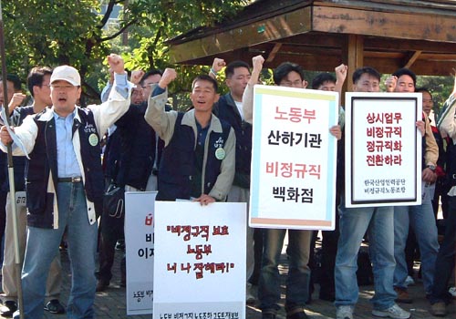 직업상담원은 정규직 전환의 핵심사항인 인건비 전환에 대해 2003년 단체협상에서 합의했음에도 불구하고 이루어지지 않고 있으며, 근로복지공단은 비정규직 대책에 의한 정규직 증원인력 숫자 중 50%를 외부로 할당하여 기존 비정규직 150여 명이 해고 위기에 놓여 있다. 산업인력공단과 산업안전공단의 상시업무 비정규직들의 차별 해소는 논의조차 되고 있지 못하다.