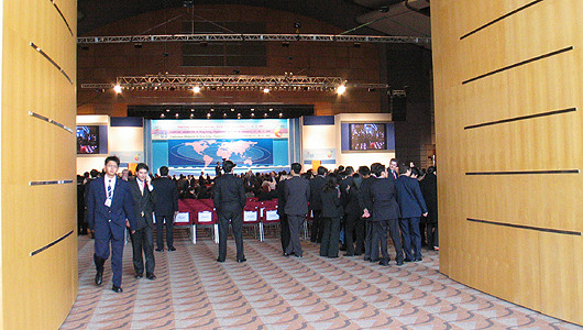 ▲ 기념행사 전면 모습. 모든 참석자들은 지정된 좌석 주변을 제외하고는 다닐 수 없도록 행사진행요원들이 이동을 통제했다. |