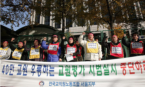 전교조의 연가투쟁 방침이 내려졌던 11월 10일, 한국교원단체총연합회(교총)은 교원평가제 시범실시 반대 투쟁의 깃발을 내렸고, 학부모단체인 ‘학교를 사랑하는 학부모 모임’은 교원평가 반대 교사 퇴출 운동을 결의했다. 심지어 이 단체는 교원평가제 도입을 촉구하며 혈서까지... 한나라당은 전교조에 대해 “교원평가제를 즉각 수용하라”는 논평을 냈으며, 여당은 “전교조의 결정은 국민적 요구를 외면한 조직이기주의로 볼 수밖에 없다”며 “교원평가제는 시대적 흐름이니, 집단행동을 자제하라”고 촉구했다.