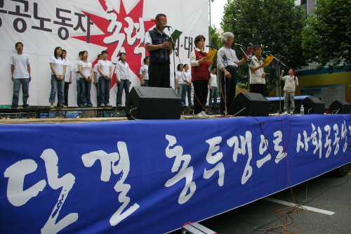 공공부문 노동자들은 ‘연대투쟁 공동 선언문’을 통해 “35만 공공노동자들은 400만 공공부문노동자들을 대신해 노무현 정부가 공공부문에 가하고 있는 노동탄압과 생존권 위협, 전 민중에게 고통을 안겨주고 있는 공공복지 전면 포기 정책을 즉각 중단할 것을 강력히 촉구한다”며 “공공부문 노동자들은 반노동자, 반민중 폭주 기관차 노무현 정권이 우리의 저앙한 요구를 받아들이지 않을 경우 단결해 강력히 투쟁할 것”을 밝혔다.