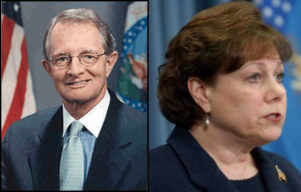 ▲ 척 램버트 미 농무부 차관보(왼쪽)와 미국 육우협회 출신인 척 램버트를 차관보로 임명한 베네만 전(前) 미 농무부 장관(오른쪽) |