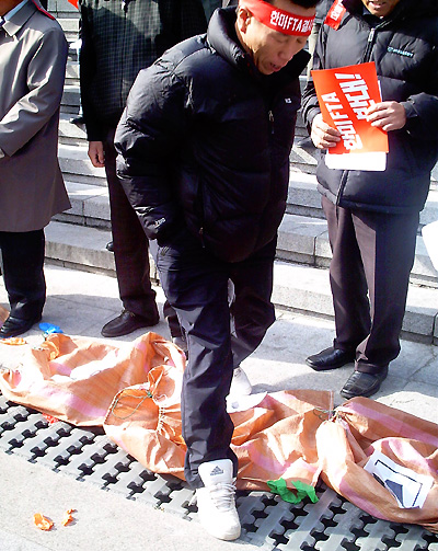 문경식 전국농민회총연맹 의장은 “노무현 정권은 사기 정권”이라고 못박고 “이 땅의 민중은 임기가 끝나더라도 노무현 정권을 용서하지 못할 것이며 한미FTA 즉각 중단하지 않을 경우 노무현 정권 퇴진을 요구하는 투쟁까지 이어갈 것”이라고 목소리를 높였다.