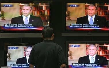 ▲ 한 미국인이 조지 W. 부시 대통령의 TV 연설을 지켜보고 있다. |
