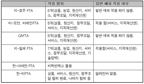 문제는 최근 미국이 체결한 FTA에는 비위반 제소의 내용이 포함돼 있다는 점이다. 체결국의 상황에 따라 내용의 차이는 있으나, ‘협정으로부터 부여되었다고 합리적으로 기대한 이익이 “협정과 불일치하지 않는” 당사국의 조치로 인해 무효화 또는 침해된 경우’로 비위반 제소를 인정하는 규정을 두고 있다.
