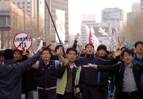 광장에 모인 이들은 온국민을 나락으로 떨어뜨리는 FTA반대 목소리로 시청 앞을 뒤덮었다.