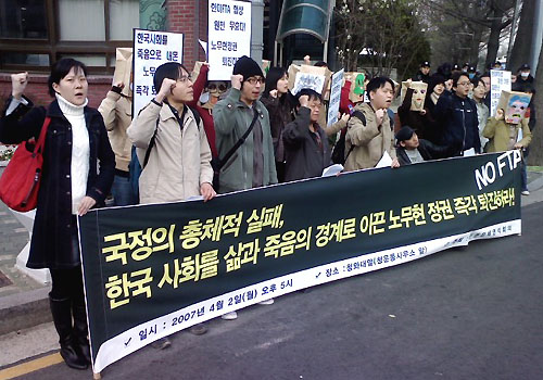 안성민 활동가는 또 "민중의 생존권을 인권유린으로 내몬 노무현 정권에게 무엇을 기대하겠는가"라며 "1년 남지 않은 임기, 권좌에서 우리가 끌어내야 할 것"이라고 노무현 퇴진 요구를 넘어 국민 저항에 의한 민중탄핵을 시사했다.