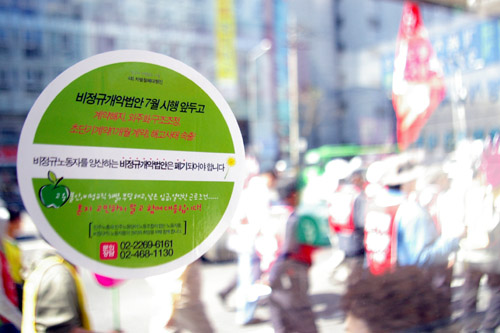 지난 23일부터 서울의 모든 차별을 없애기 위해 노동자들과 사회단체 회원들이 서울 전역을 걷고 있다. 가끔은 세찬 바람이 불고, 가끔은 햇볕이 내려쬐는 서울 거리를 “안녕! 빈곤”, “안녕! 비정규직”이라는 피켓을 들고 걷고 있다.