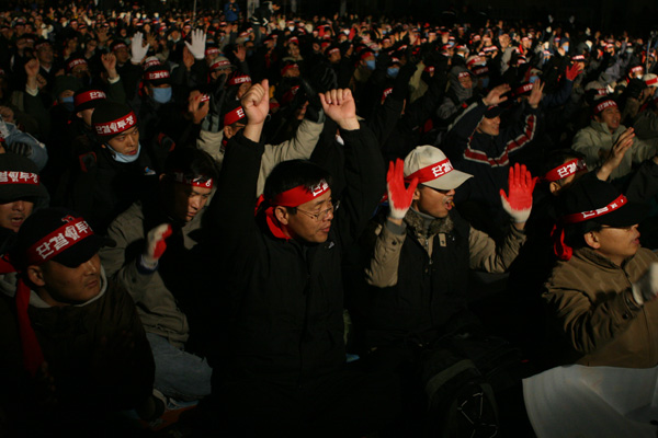▲ 추운 날씨에도 파업 전야제의 열기가 뜨겁다. |