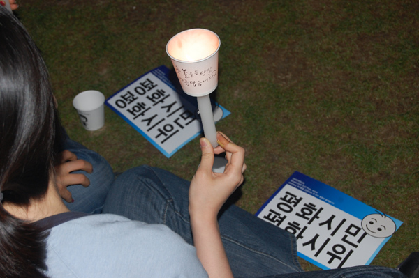 오늘 많은 시민이 모이지 않은 것 같다고 하자 "어제와 비교되지 않지만 오늘은 모이자고 이야기하지도 않았는데 이 정도면 많은 사람들이 나왔다. 이 촛불은 이명박 대통령이 내려올 때까지 꺼지지 않을 것"이라고 말하기도 했다.
