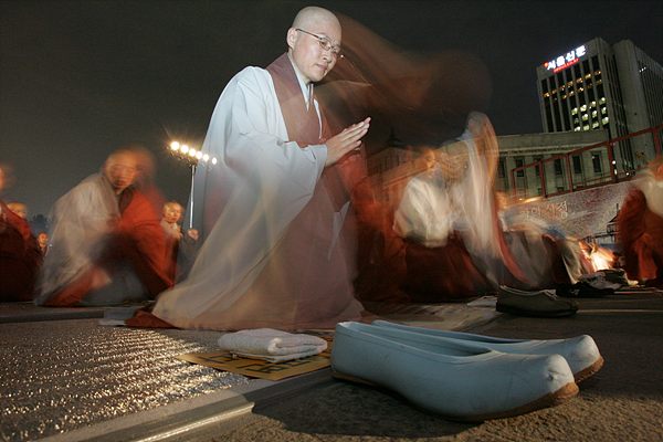 "촛불을 국가의 폭력으로부터 지켜 내지 못한 허물을 참회하며 절을 올립니다"