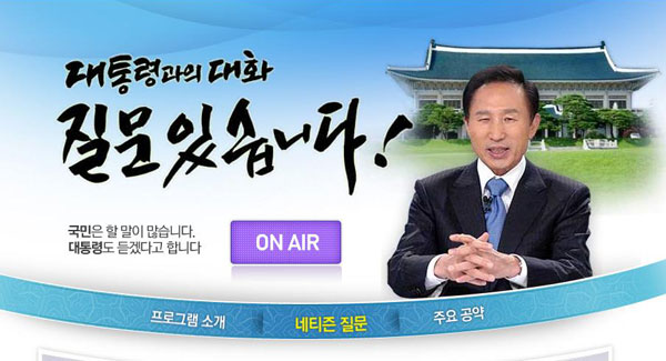 일부 네티즌들은 "전과 14범도 대통령 할 수 있나요?", "올 추석엔 고향 오사카에 가실 건가요?", "제발 아무 것도 안하면 안됩니까?", "이거(국민과의 대화) 하려고 정연주 사장 내보냈죠?", "대통령님 때문에 쌓인 스트레스는 누가 보상해 주죠?", "민주주의의 뜻을 아시나요?", "'가문의 비리' 3탄은 언제 나와요?", "그냥 사퇴하면 안돼요?"라는 등 조롱섞인 질문을 올려 놓기도 했다.