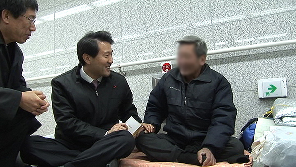 오 시장이 떠난 후 그와 악수를 나눈 노숙인 표 모 씨를 찾아가 "가장 필요한 게 뭐냐"고 물었다. "일자리지"라고 대뜸 말한다. 그는 "일당 일을 하는데, 나가도 3일에 한번 일하기도 힘들다"고 푸념했다.