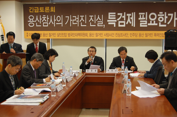 이어서 이명박정권 용산철거민살인진압 범대위.용산철거민사망사건 진상조사단.민주당 용산참사진상조사대책특위는 ‘용산참사의 가려진 진실, 왜 특검이 필요한가’를 토론했다.
