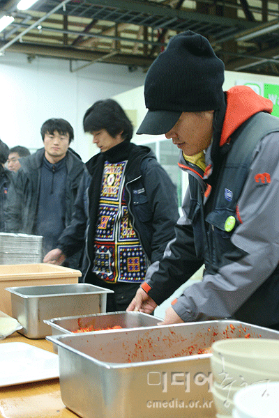 공장 한 모퉁이에서 3명의 포장마차멤버(일명 포차멤버)가 모여 있다. 포차멤버는 회사가 청산절차를 밟아 식당이 폐쇄되자 동료들의 식사를 해결해주기 위해 결성한 멤버다. 연대 온 사람들이 있으면 짬뽕, 콩나물국 등을 만들어 나눠먹고, 투쟁하는 동료들을 위해 틈틈이 간식도 준비했다. 그런데 요즘엔 포차멤버들이 별로 할 일이 없다. 업체에서 매끼 1인당 1,300원가량 하는 밥을 배달해서 먹기 때문이다. 얼마나 투쟁이 더 끈덕지게 갈지 모를 일. 노조는 투쟁기금을 생각해 비용이 적은 방식을 선택할 수밖에 없었다.