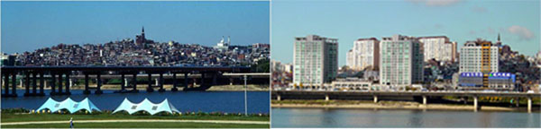 ▲ 구릉지 경관의 변화 (보광동 1994년, 2009년) 다세대 단독주택 중심에서 고급아파트 중심으로 변화됨. |