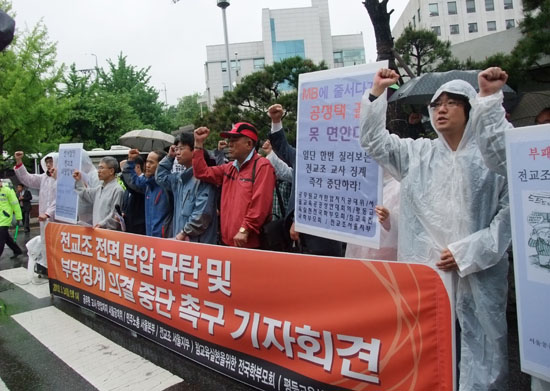 이에 전교조 서울지부, 민주노총 서울본부, 참교육을 위한 전국학부모회 등 5개 단체들은 24일 1시, 서울시 교육청 앞에서 ‘전교조 전면탄압 규탄과 부당징계 의결 중단 촉구’ 기자회견을 열었다.