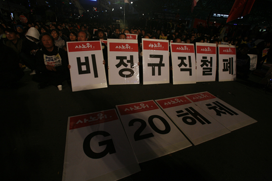1천여명의 노동자가 서울역광장을 가득 메웠다. 전태일 열사 40주년을 맞아 6일 저녁7시 열린 노동자대회 전야제는 민주노총이 아닌 70개의 노조, 정치조직, 진보정당, 사회단체가 열었다. 전야제에 참석한 사람들을 만나 다양한 목소리를 들어봤다.
