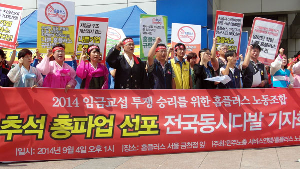 민주노총 서비스연맹과 홈플러스노조는 4일 오전 11시, 홈플러스 금천점 앞에서 기자회견을 열고 “이번 추석파업은 홈플러스 노동자들의 마지막 경고”라고 목소리를 높였다.
