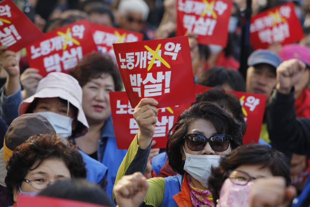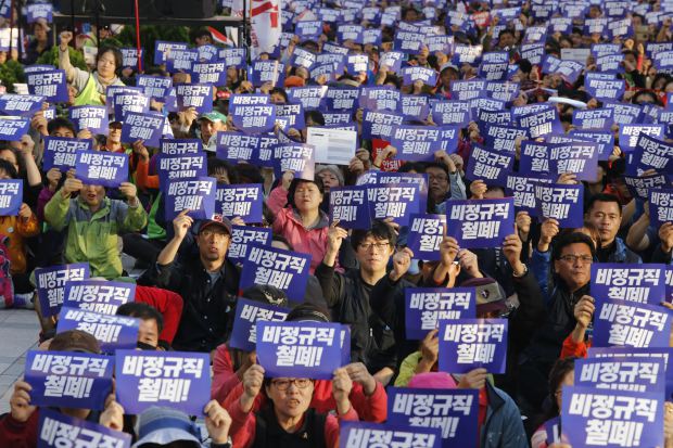 민주노총 소속 비정규 노조 대표자들은 이날 대회에서 삭발식을 진행하고 “비정규직 기간제한을 4년으로 늘리고 해고할 수 있도록 하면 정규직의 꿈은 완전히 사라진다”며 “제한돼 온 파견 고용을 뿌리 산업에 전면 허용하면 제조업 불법파견이 면죄부를 받아 평생 비정규직 시대가 안착한다”고 목소리를 높였다.