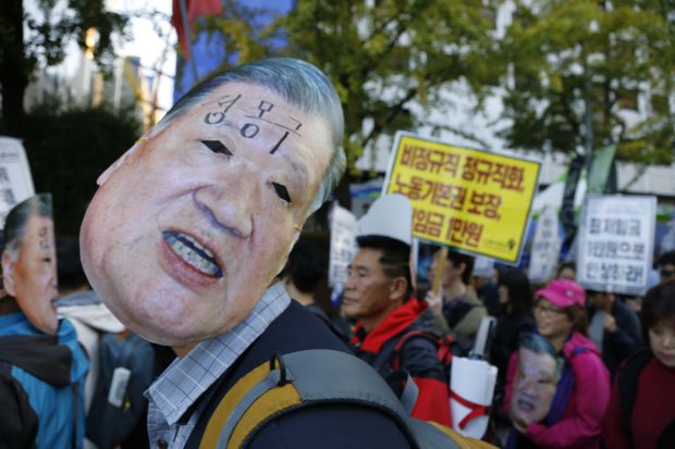 박근혜 정부 노동개악 최대희생자가 될 수밖에 없는 비정규직 노동자들이 오는 11월 14일 비정규직 5만 명 조직화 목표를 다지고 ‘자본을 향한 레퀴엠’(진혼곡)을 부르며 서울 도심을 걸었다. 민주노총은 24일 오후 3시 서울 청계광장 옆 파이낸스 빌딩 앞에서 비정규직 조합원 등 3천여 명이 모인 가운데 노사정 야합 폐기, 기간제법.파견법 개악 저지, 법.제도 개선 쟁취를 결의하고 종로를 거쳐 국가인권위원회까지 행진을 진행했다.
