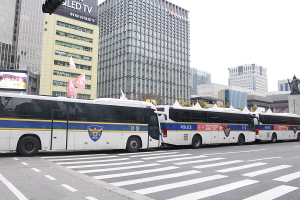 ▲ 광화문 광장을 봉쇄한 차벽 [출처: 김한주 기자] |