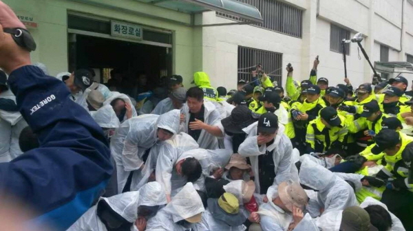 갈등이 발생한 것은 18일 오전부터다. 친부는 오전 10시부터 약 1시간 40분가량 자리를 비웠고, 돌아온 뒤 노조에 권한을 위임하겠다는 기존 입장을 번복했다. 노조가 알지 못하는 사이 염습이 이뤄졌고, 부친은 시신을 부산으로 옮기겠다는 입장을 피력했다. 노조가 부친을 설득하는 과정이 이어졌다. 그리고 노조와 부친의 이견 대립 도중, 경찰이 대규모 경력을 투입해 시신을 탈취했다.