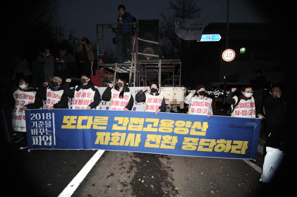 쇠사슬 몸에 묶고 저항했지만, 끝내 비정규직..