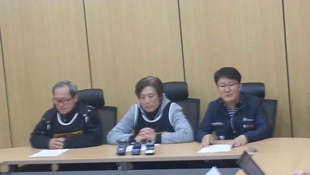 그사이 콜텍 사측이 교섭 장소에 들어갔다. 기자들은 노조 측 브리핑이 끝나고 사측 입장을 듣기 위해 교섭 장소로 갔다. 사측에서는 박영호 사장과 이희용 상무 등 3명이 참석했다. 기자들의 질문에 박영호 사장이 짧은 답변을 한다.