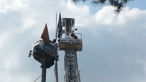 집회 중에 김소연(삼성해고자대책위), 윤택근(민주노총 부위원장), 이덕우(민주사회를위한변호사모임, 이하 민변), 전진한(인도주의실천의사협의회, 이하 인의협) 씨가 김용희 씨를 설득하기 위해 소방 사다리차로 고공농성장에 올라갔다.