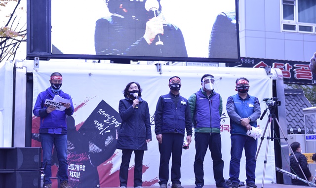 또 “50년 전 ‘근로기준법을 지켜라’고 했던 전태일 열사의 외침이 지금 우리에게 ‘노동개악 저지하고 전태일 3법 쟁취하자’는 투쟁의 함성임을 명심하자. ‘내 죽음을 헛되이 하지 말라’는 열사의 당부를 ‘간부들이 앞장서서 노동악법 저지하고 전태일 3법 쟁취하자’는 결의로 이어가자”라고 투쟁을 호소했다.