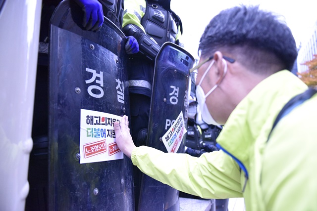 김재하 비대위원장은 이날 더불어민주당 당사 앞에서 진행된 마무리 대회에서 총파업 투쟁을 선언했다.