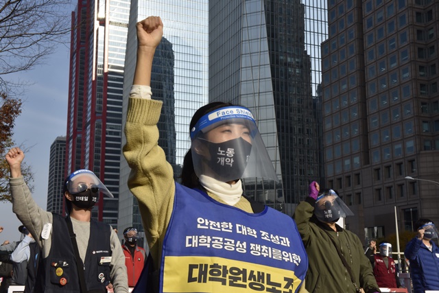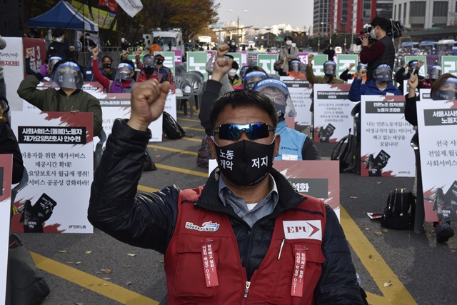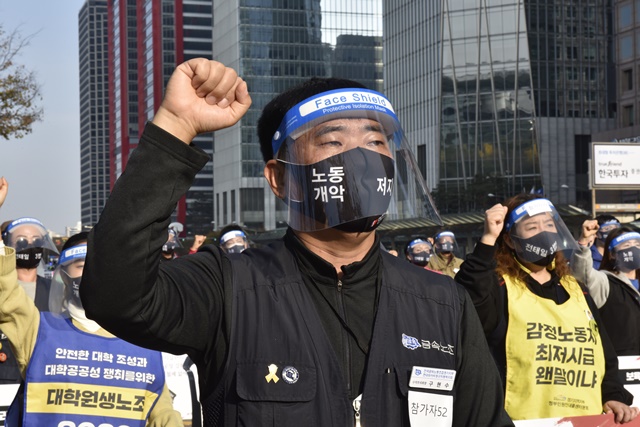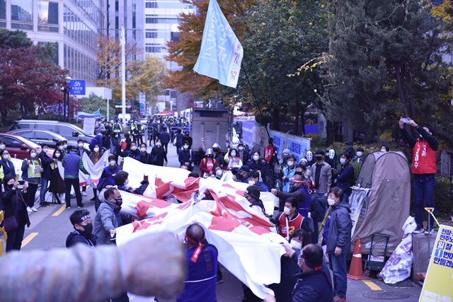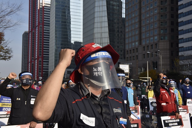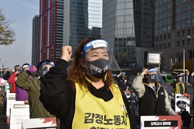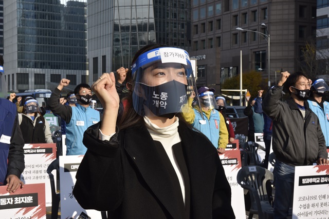 전태일 50주기 열사정신계승 전국노동자대회 [사진] 은혜진 기자 2020.11.14 17:45 크게 작게 프린트 기사공유 | 14일 오후 서울 여의대로 여의도공원에서 전태일 50주기 열사정신계승 '전국노동자대회'가 열렸습니다. 대회에 참석한 50인의 노동자들은 "우리가 전태일이다", "전태일의 이름으로"라고 함께 외쳤습니다.