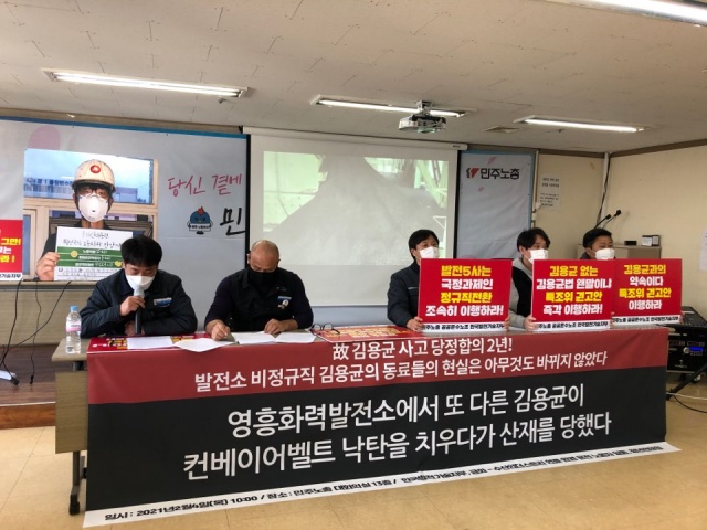 공공운수노조 한국발전기술지부 등은 4일 오전 10시 민주노총 대회의실에서 기자회견을 열고 “정부와 발전5사는 김용균과의 약속을 지켜야 한다”고 촉구했다.