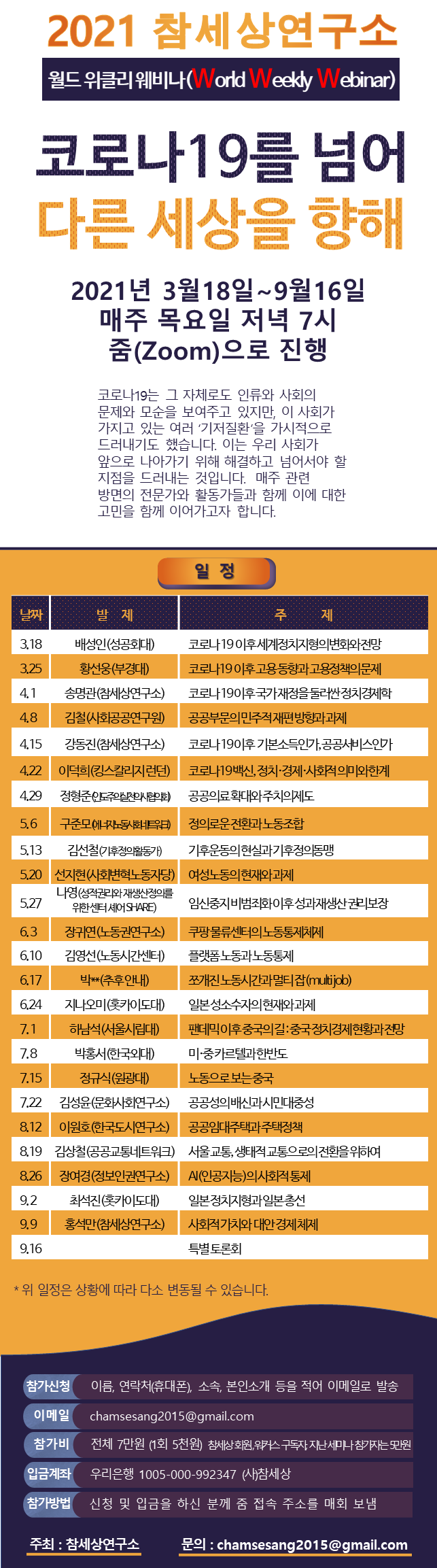 ○ 제목 : 2021 참세상 WWW : 월드 위클리 웨비나(World Weekly Webinar)