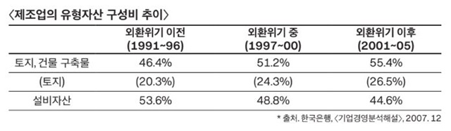 IMF 경제 위기 때도 설비자산 줄이고 땅 투기했다