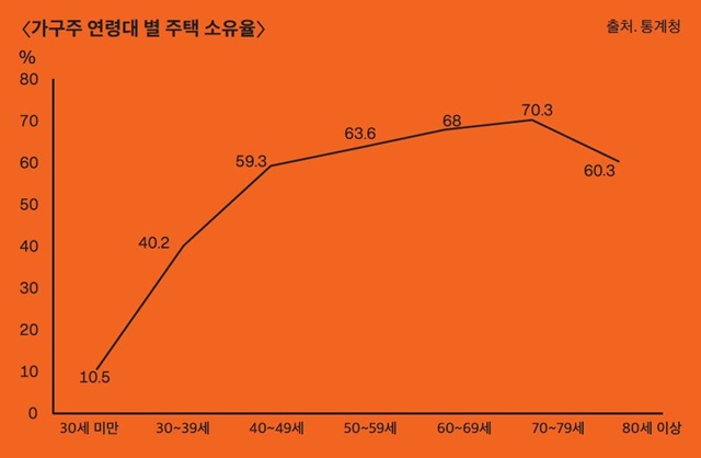 이를 개인별로 보면 2020년 11월 기준, 전체 주택 1852만6천 호 중 개인이 소유한 주택은 1596만8천 호로 86.2% 차지한다. 공공임대주택의 건설에도 개인의 주택 소유율은 수십 년째 큰 대차가 없다. 또한, 주택 소유자는 1469만7천 명으로 연령별로 보면 70대(70.3%), 60대(68%), 50대(63.5%), 80세 이상(60.3%), 40대(59.3%), 30대(40.2%), 30대 미만(10.5%) 순이다. 이는 30대 이하의 주택보유율 증가가 일시적인 현상임을 보여준다. 아울러 주택 소유가 노년층에 갈수록 높아진다는 것은 주택이 노후 자산으로 애용된다는 증거이기도 하다.
