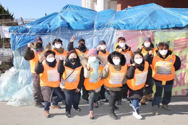 물론, 창원에 있다고 편한 것은 결코 아니다. 공장 앞 천막농성장 사수와 출퇴근 선전전 등 기본 일정을 포함하여 투기자본을 규제하는 입법을 위한 거리서명, 지역 연대집회 참석 등의 일정을 매일 해야 한다. 하지만, 그래도 창원은 일명 ‘나와바리’이고, 서울은 생면부지 낯선 곳이다. 명희 씨에게 작년에도 안 좋다고 들었던 허리 통증은 어떤지 묻자 “이 나이에 안 아픈 게 이상한 거 아니겠냐?”고 한다. 추운 날씨에 밖에서 오래 서있다 보니 더 아픈 것 같다고 했다.