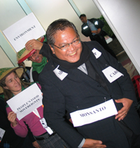 포커스온글로발사우스 활동가인 샤말리 구탈(Shalmali Guttal) 씨는 "식량을 상품화 하고 각국으로 개발되고 각국을 환상에 젖게 하지만 현실은 그렇지 않다. 그들의 협상은 전세계 수백만의 민중을 황폐화 시킬 것이다. 비아깜페시나와 식량주권 네트워큰 여기에서 함께 싸우고 분명 우리가 이렇게 반대하고 있다는 얘기를 정부 협상단을 주의 깊게 들어야한다"고 얘기했다.