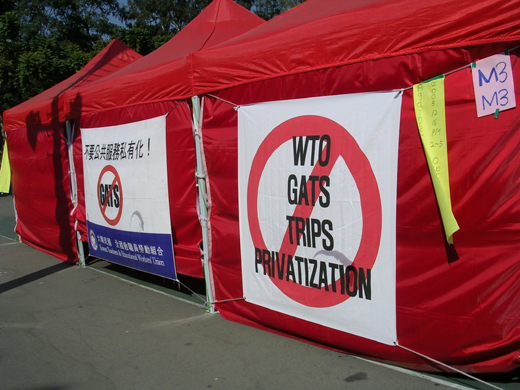 WTO각료회의가 시작된 후, 한국농민들과 한국투쟁단의 투쟁이 홍콩를 비롯한 전세계의 주목을 끌고 있는 가운데, 서비스협상(GATS)의 문제점을 알리는 워크숍이 열렸다. 12월 16일 오후2시, 홍콩 빅토리아 공원 내에 있는 OWINS(Our world is not for sale우리세상은상품이아니다)텐트에서 열린 워크숍은 학생들의 율동공연으로 시작하고 공공연맹 허인 부위원장의 사회로 진행됐다.