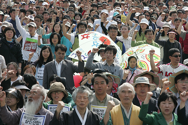이윤기 한국대학생연합 의장은 “이명박 정권 심판없이는 대학생의 미래가 없다. 등록금과 청년실업으로 대학생들이 죽어가는데 이명박 정권은 절박한 요구를 외면하고 있다”고 비판했다. 남윤인순 여연 대표는 “지난 4.29 재보선을 통해 각 부문과 계층에서 민주적 역량을 확인했는데 이제는 많은 단체가 하나의 연대로 나가야 승리함을 느끼지 않았냐고 반문하고 여성계도 사회연대 투쟁에 함께 해 나가겠다고 말했다.