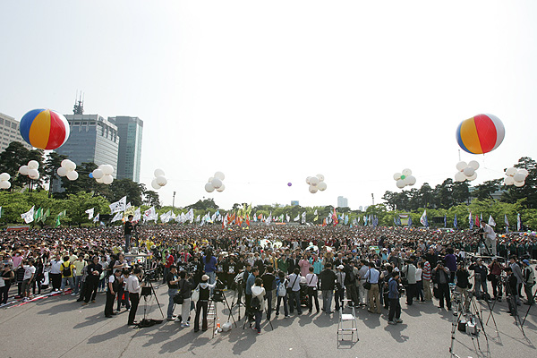 진보정당도 민주노총의 배타적 지지 정당인 민주노동당만이 아니라 진보신당도 함께 올랐다. 강기갑 민주노동당 대표와 노회찬 진보신당 대표가 모두 연단에 올라 함께 손을 잡았다. 4.29 총선에서 원내에 진출한 진보신당이 민주노총의 큰 집회에서 공식 발언을 한 점은 향후 민주노총 정치방침에 일정한 영향을 미칠 것으로 보인다.