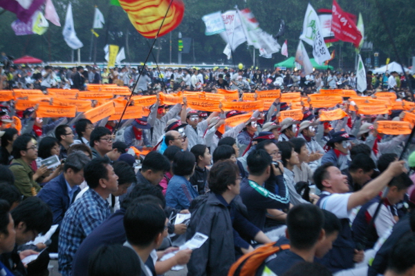 국민대회 1부가 끝나고 2부로 노무현 전 대통령 추모 문화제가 시작하자 깃발 밑에 있었던 노동자들이 술렁이며 자리에서 일어났다. 문화제를 마치고 “살인정권 물러나라”를 외치던 시민들은 전경들의 강제 해산에 다음 약속을 잡지 못하고 헤어졌다.