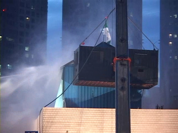 ▲ 20일 작전 당시 경찰특공대는 컨테이너 두 대를 동원해 한 대는 망루 지붕을 뜯고 위에서 진입할 계획을 세웠지만 현장에 컨테이너는 한 대만 지원됐다. 특공대 1제대장은 '두 대가 있었으면 덧 낫지 않느냐'는 질문에 "특공대 작전도 수월하고 농성자 입장에서에도 안전에 더 낫다"고 증언했다. [출처: 참세상 자료사진] |