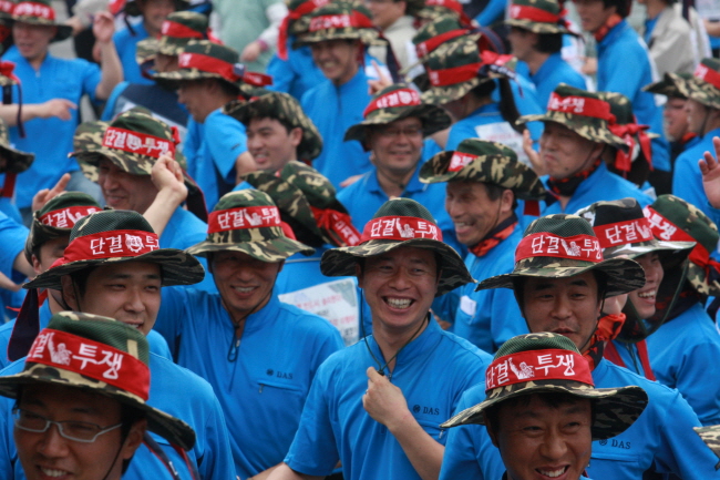 결의대회에 이어 다스 조합원들은 구호 연습과 전체 조합원 율동 연습, 노래를 배우는 시간을 가졌다. 노동자들의 일체감은 함께 구호를 외치고 함께 노래를 부르고, 함께 율동을 하고 함께하는 공동행동으로부터 나온다. 위계는 없다. 간부와 조합원들이 하나다.