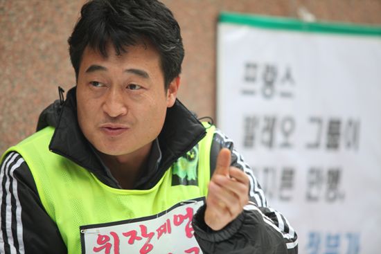 대사관 앞 농성장을 찾으니, 빨간 담요 하나만 덩그러니 놓여있다. 홀로 자리를 지키고 있는 이택호 지회장에게 ‘춥지 않느냐’고 묻자 “이제 추위도 단련시켜야지요”라며 웃는다. 일본과 프랑스 원정투쟁, 그리고 전국 도보투쟁을 마치고 프랑스 대사관 앞에 자리를 잡은 이택호 지회장. 그에게 지회가 만들어가고 있는 초국적 자본에 대한 투쟁의 이야기를 들어보았다.