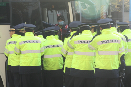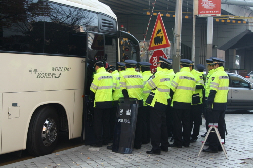 한편, 그렇게 버스 입구를 ‘밀봉’한 경찰은, 화장실을 가고 싶다는 조합원들에게 두 명씩 안내조를 편성해주는 친절을 베풀기도 했다.