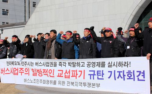 한편, 버스노조민주화쟁취를위한 전북투쟁본부는 이날 오후 2시 전주시청에서 일방적인 교섭파기를 규탄하는 긴급기자회견을 열었다.