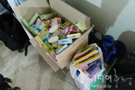 또 노동자들은 자발적으로 치약, 비누, 샴푸 등 생필품을 가져와 한 곳에 모아뒀다. 집에 다녀올 때면 밑반찬을 가져와 옹기종기 모여 나눠 먹는다. 어느새 작은 공동체가 만들어진 것이다.